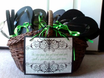 Have a basket of flip-flops in varying sizes with a sign that says "kick off your heels and enjoy some dancing." Your female guests will be thankful. *Photo courtesy of LIWeddings.